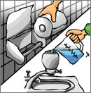 噴灑潔廁劑於馬桶及便斗的
