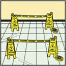 放置警示牌及相關警示物品,重要通路放置數個警示標誌提醒正在進行除蠟工作,做區域隔離動作。 |