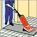 準備工具:警示牌或醒目路障、拖把組及拖把擰乾器組、單盤機、菜瓜布、靜電拖把、刮刀或鏟刀、刮水器、萬向握把、除塵工具、乾濕吸塵器、擦拭布 |