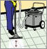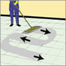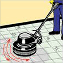 操作單盤機清洗地板舊蠟,讓除蠟劑浸泡數分鐘後開始清洗,搭配黑色菜瓜布或洗地刷清洗,全面刷洗重複重疊刷洗可以讓清洗工作更完整。 |