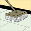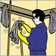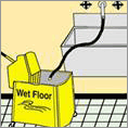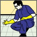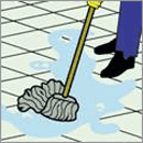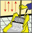 除蠟劑稀釋液大量均勻塗佈於地板上,除蠟拖把完全浸濕後在擰乾器上過濾多餘水分,不要擰乾並塗佈大量除蠟劑於地板上,每次約10X10公尺工作區域,每次重疊塗佈除蠟劑,角落及邊腳除蠟劑塗佈均勻,不要讓除蠟劑流到地毯或作業區域外。 |