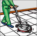 準備工具:自動洗地機、紅色菜瓜布、靜電拖把、拖把、高速拋光機、獸毛菜瓜布 |